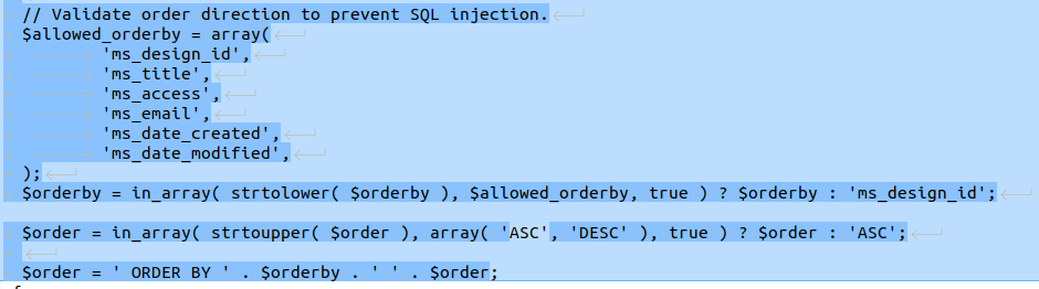 $orderby = in_array( strtolower( $orderby ), $allowed_orderby, true ) ? $orderby : 'ms_design_id';