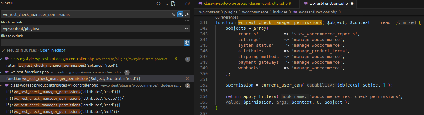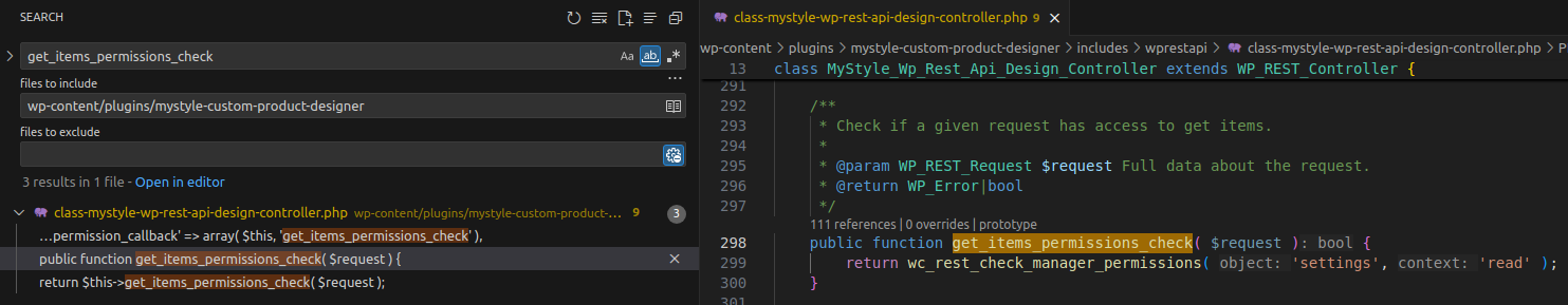 function runs โ we need to know whether an anonymous user can call this API. Search for get_items_permissions_check