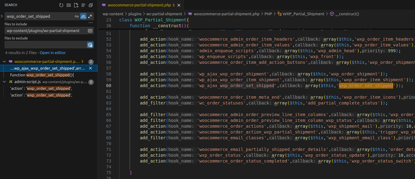 is registered in the class constructor as a callback for the wp_ajax_wxp_order_set_shipped