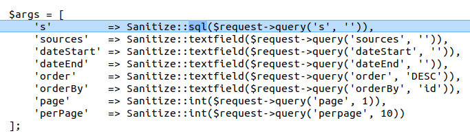 'order' => Sanitize::textfield($request->query('order', 'DESC')),