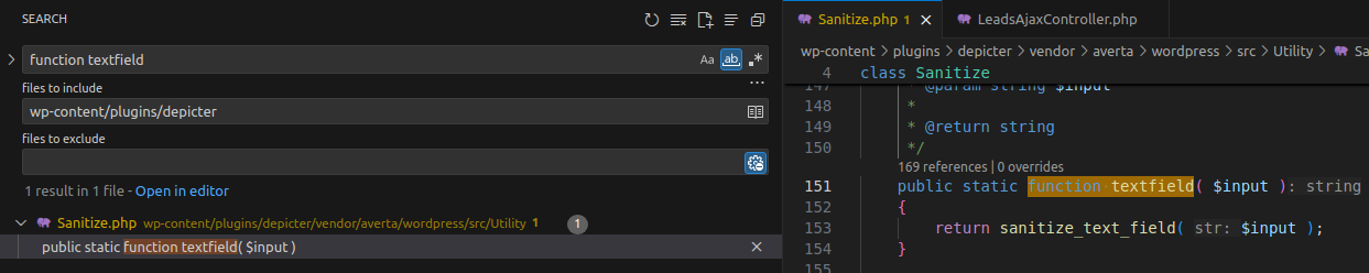 Use any diff tool to compare the vulnerable and patched versions. A notable difference appears in app/src/Controllers/Ajax/LeadsAjaxController.php.
