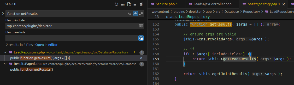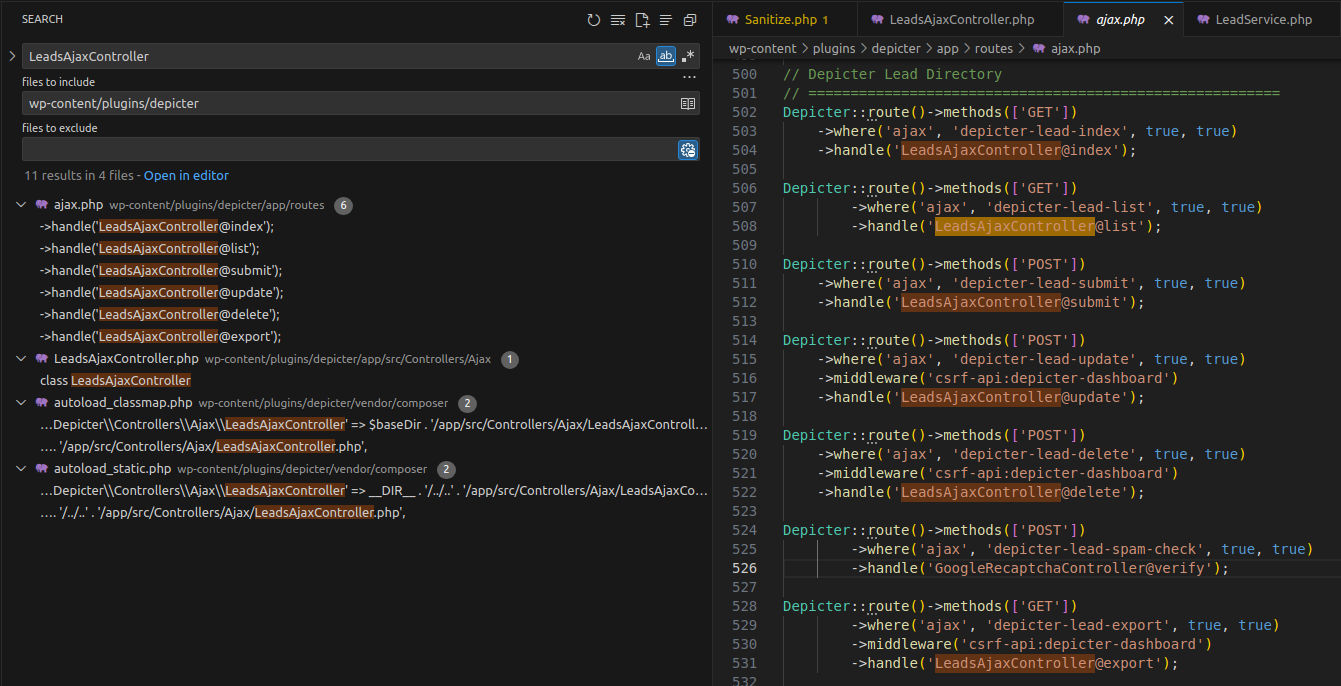 may yield too many results. Instead, search for the class name LeadsAjaxController